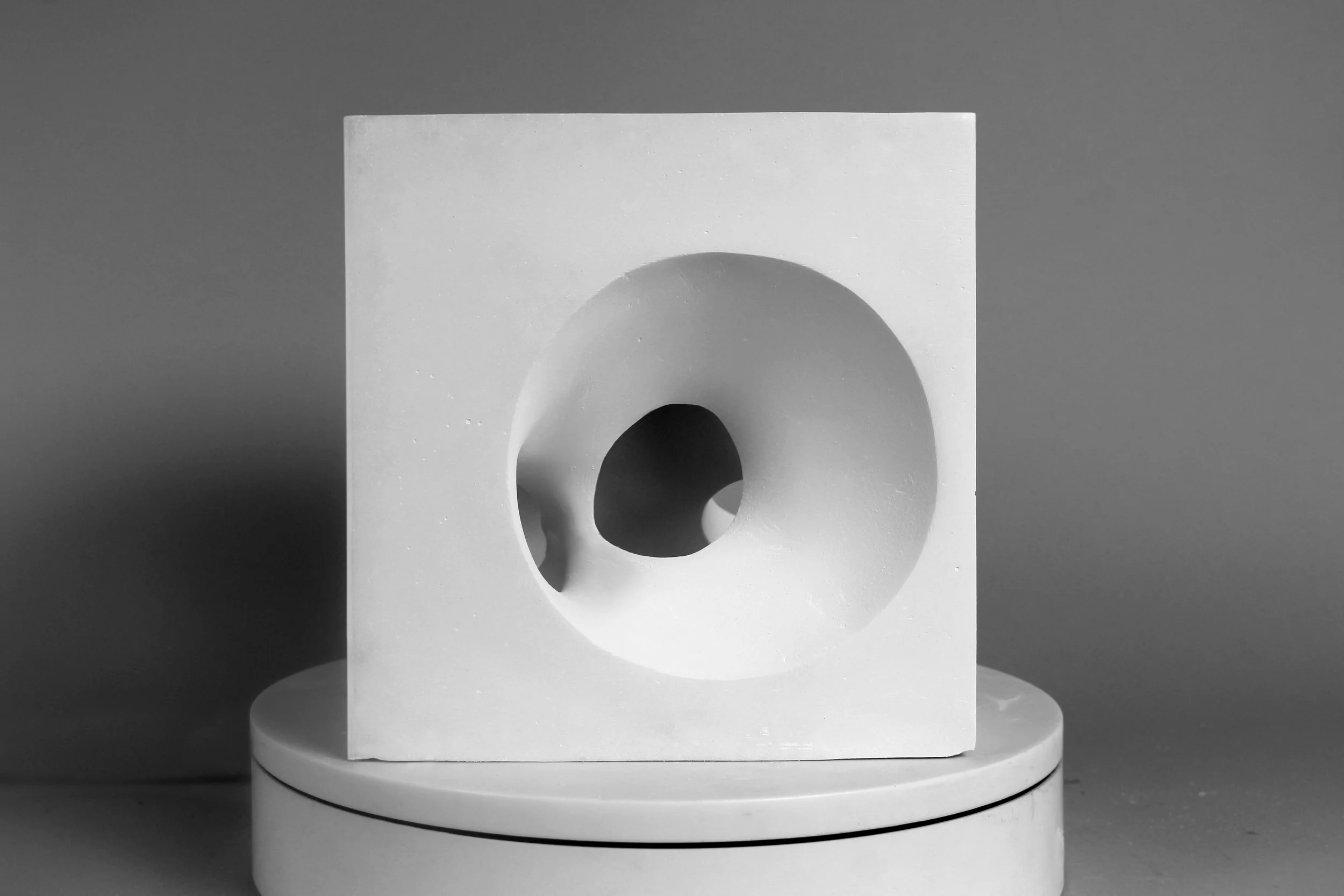 Placement of circles on each side of the cube create interrelated relationships where the proportions of the circles and placement of the circles are complementary and contrasting when viewed from any 3⁄4 view. Any three sides of the cube, when viewed together, should have an interesting visual presence that expresses variety, contrast and tension.